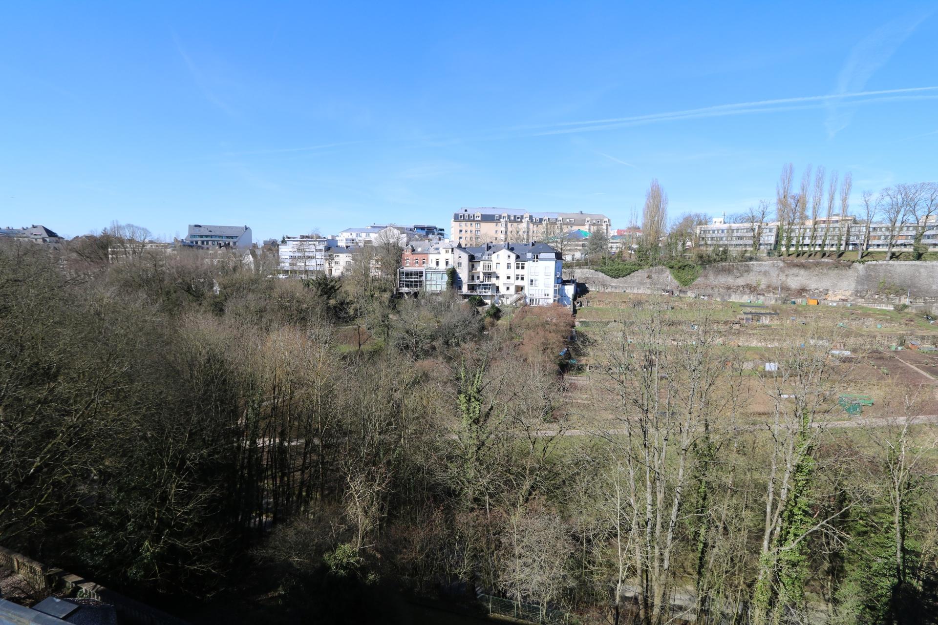 Cuisine récente et beau salon donnant une vue spectaculaire sur la vallée de la Pétrusse et le centre-ville.