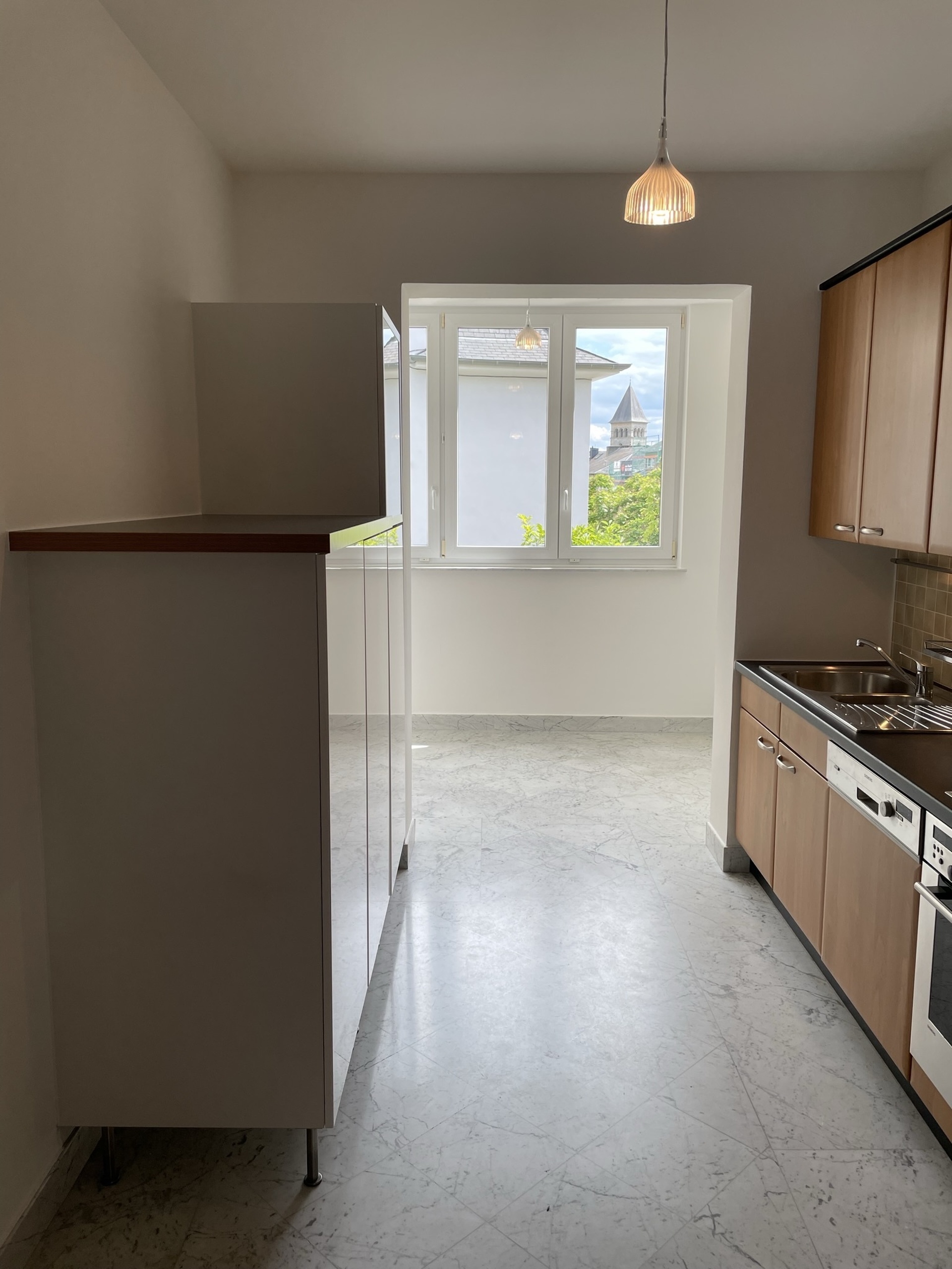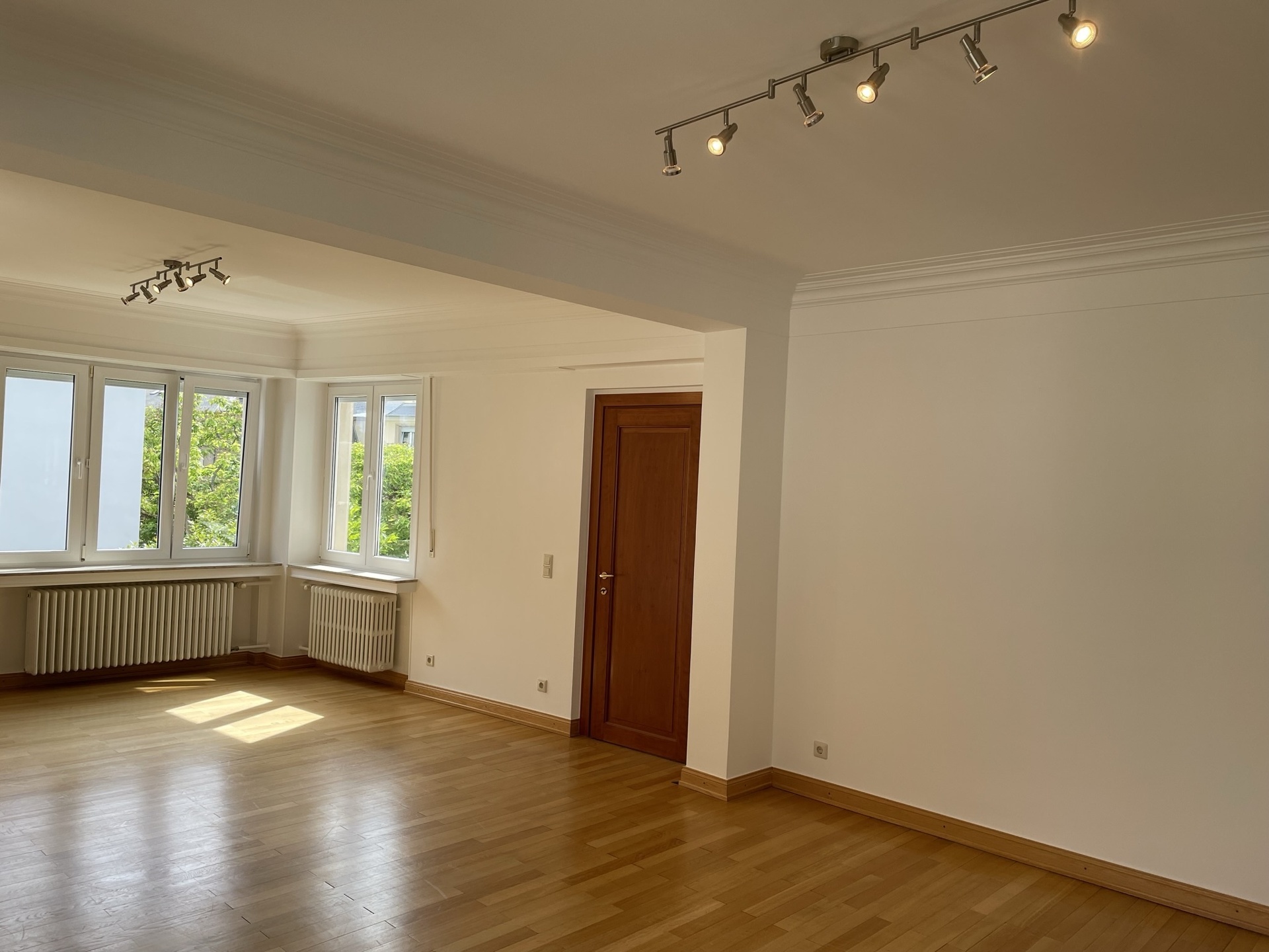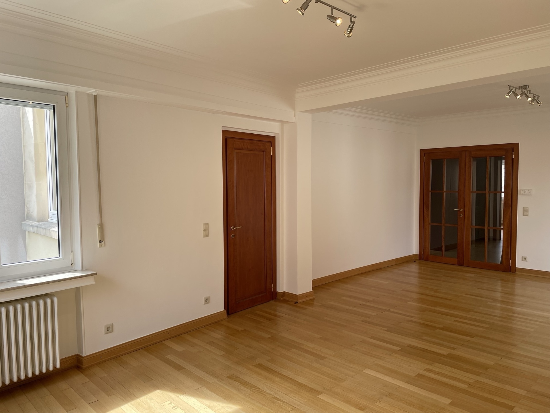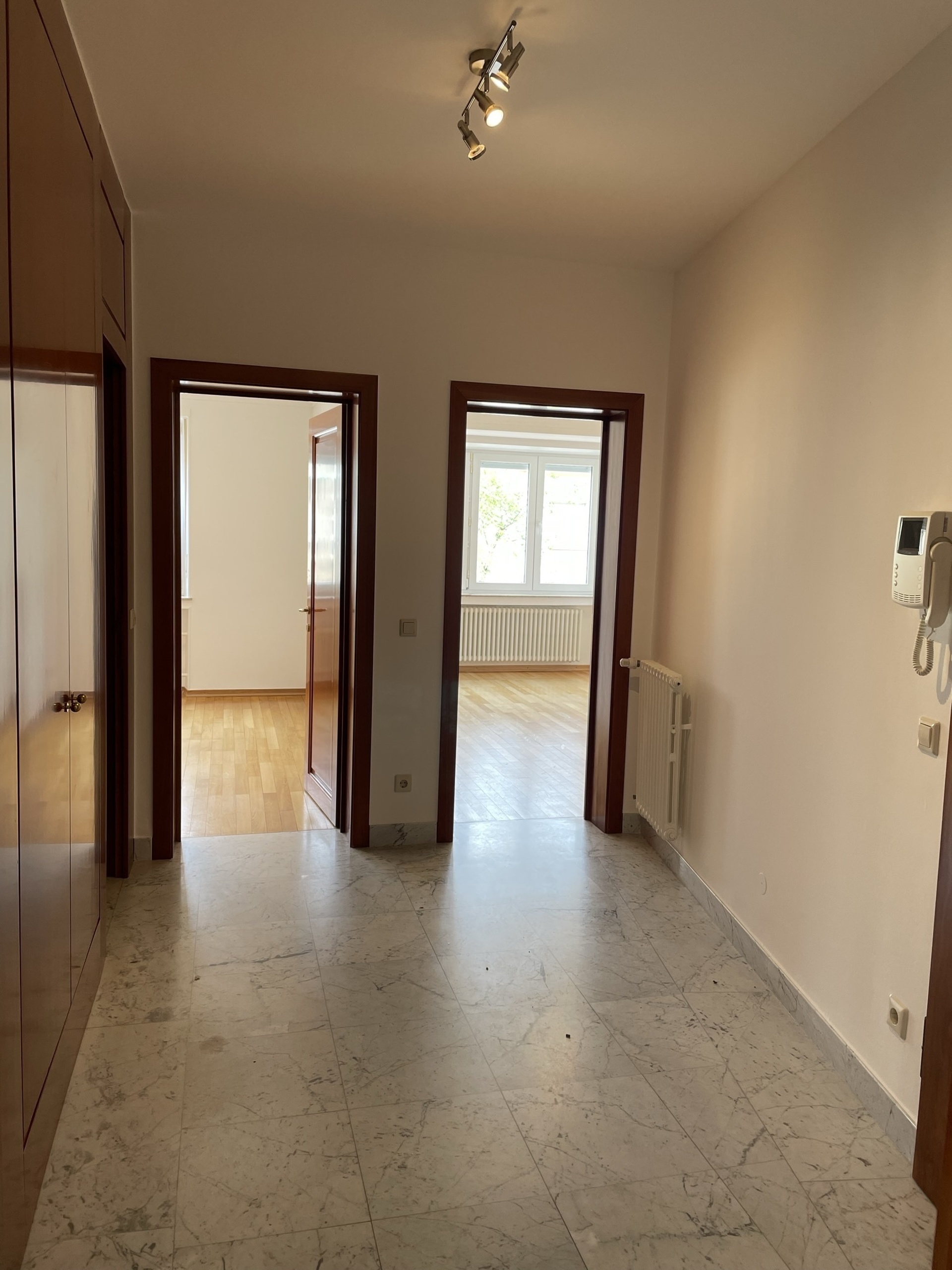LUXEMBOURG-LIMPERTSBERG – Appartement de style dans petite résidence, finitions luxueuses (sols et sanitaires en marbre, belles boiserie, parquets d’origine en chêne…), situation privilégiée dans quartier résidentiel calme, constr. ± 1955, immeuble rénové avec beaucoup de goût, ± 98 m2, 1er étage, hall en marbre avec placards, living lumineux, cuisine équipée avec coin repas, 2 grandes chambres à coucher, salle de bains, WC séparé, cave, buanderie commune. Disponible de suite.
