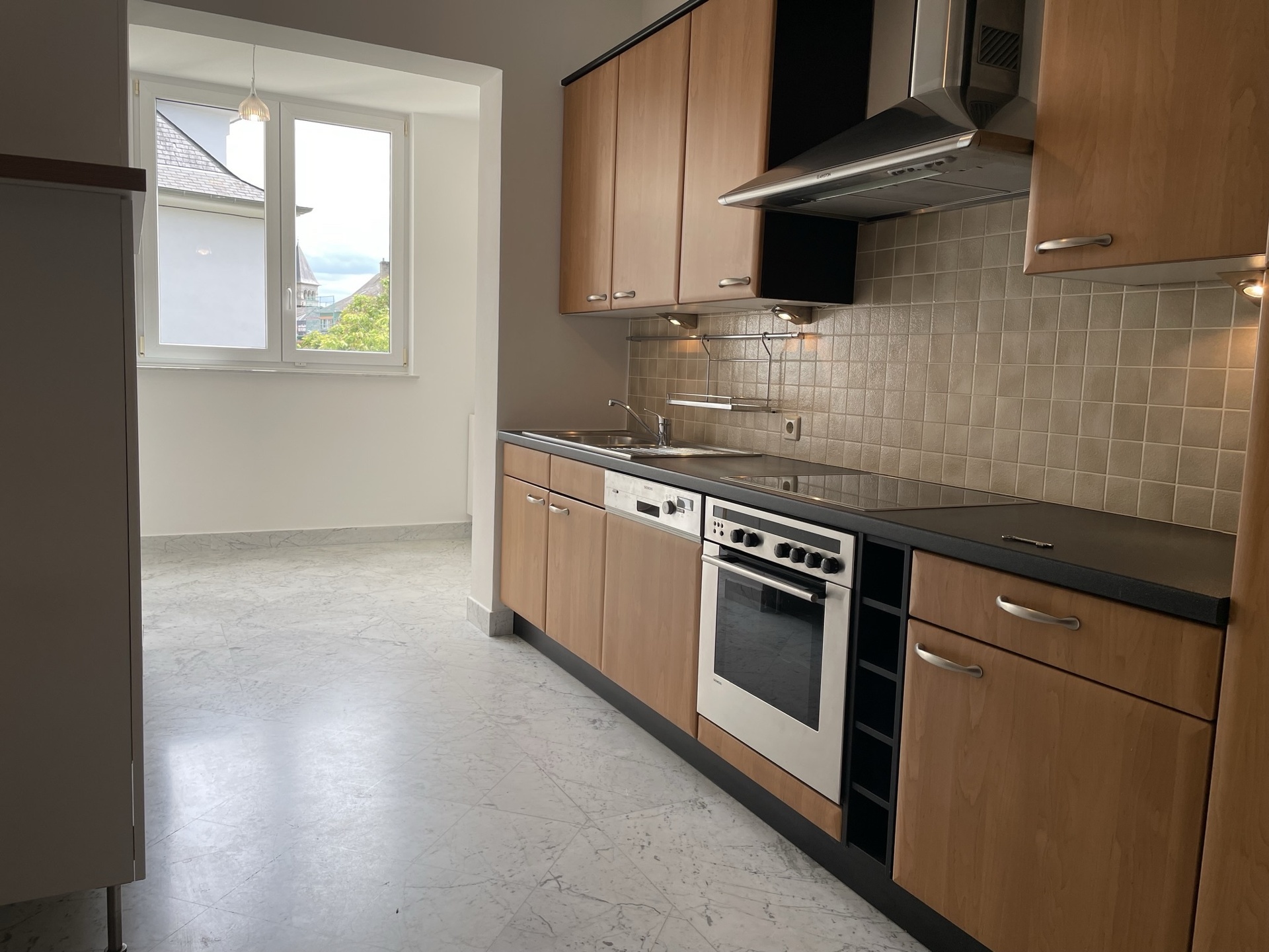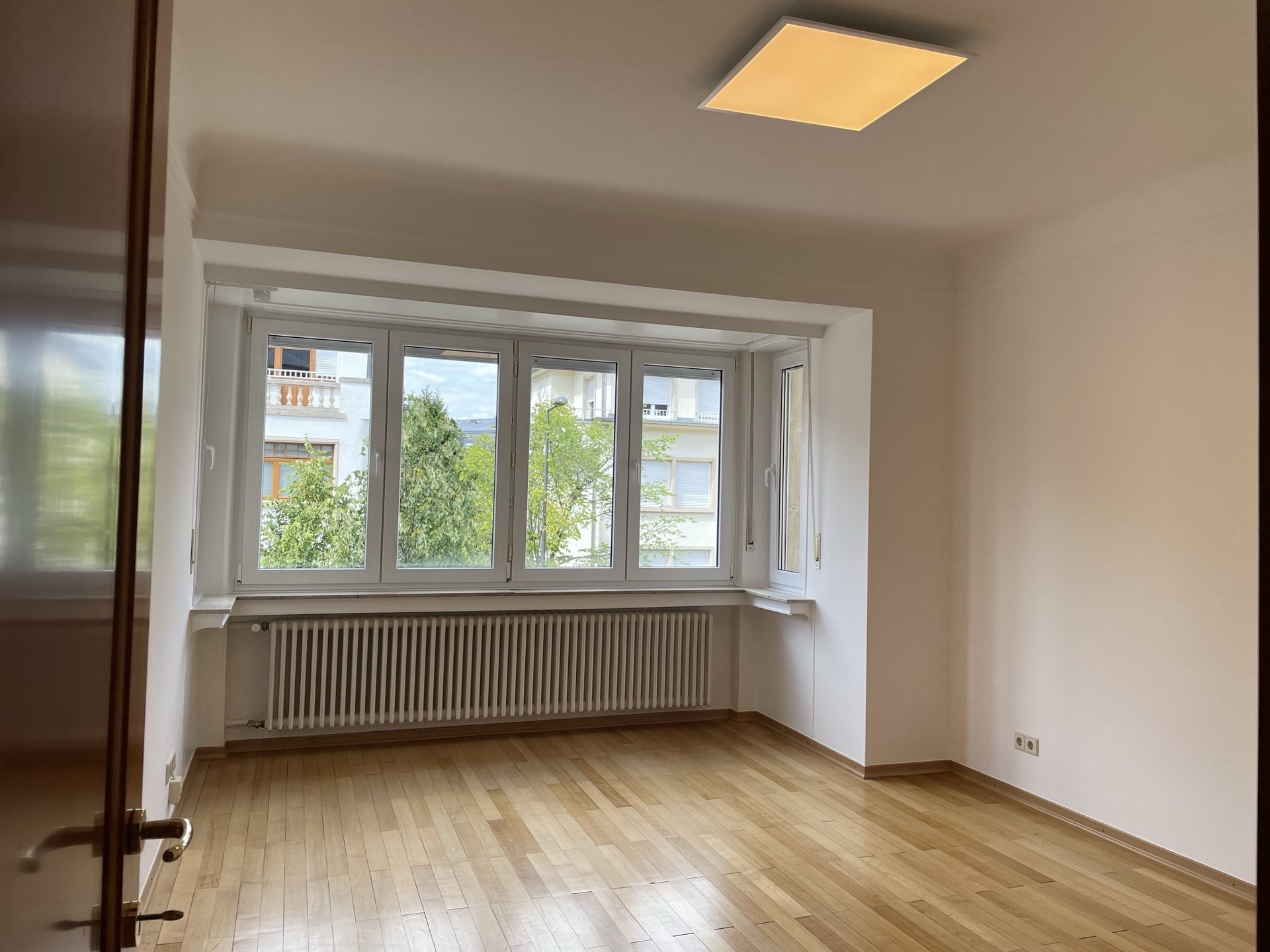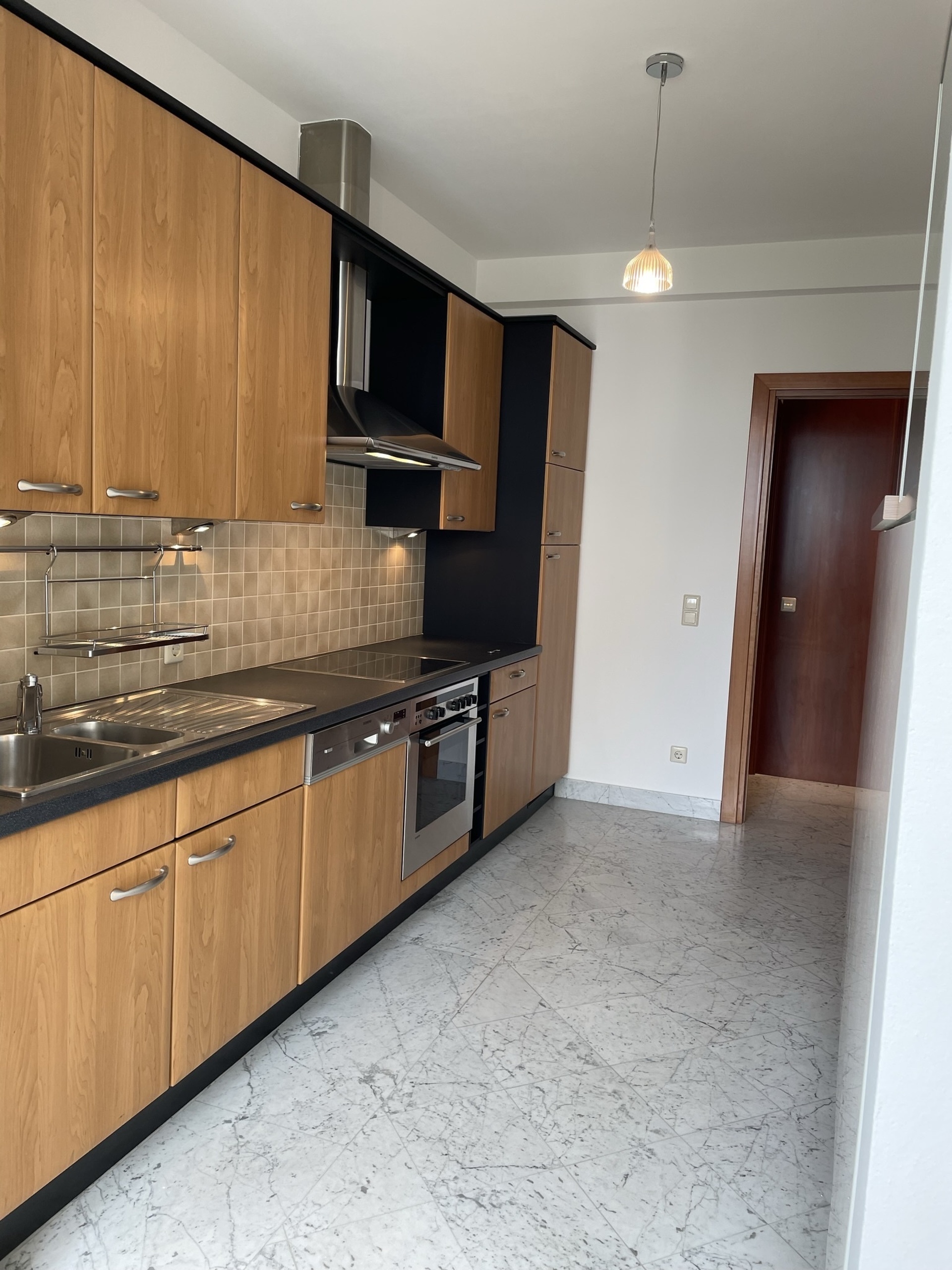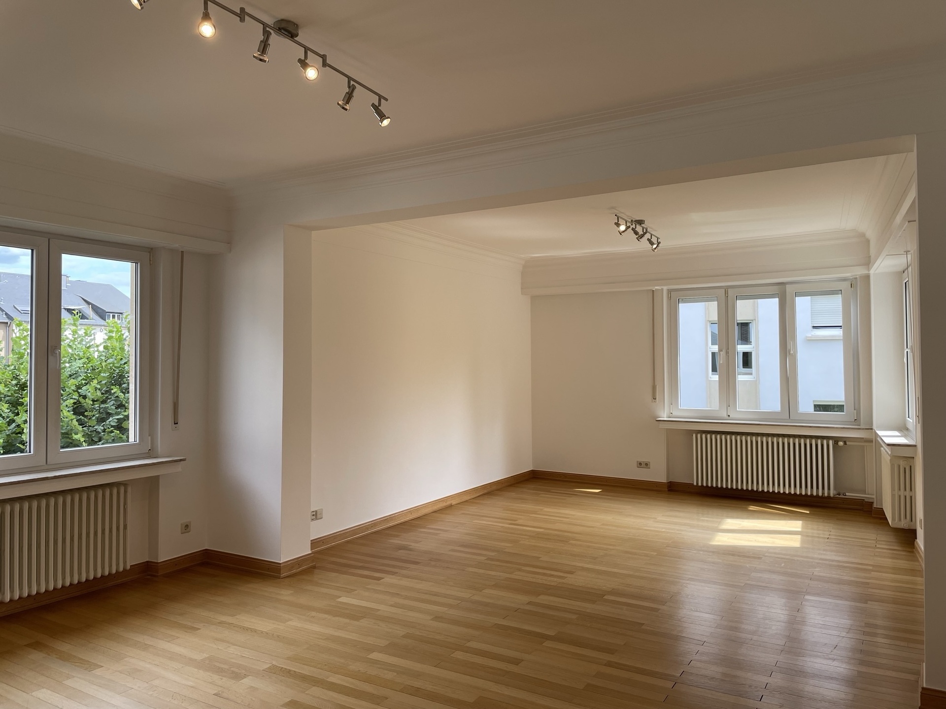 LUXEMBOURG-LIMPERTSBERG – Appartement de style dans petite résidence, finitions luxueuses (sols et sanitaires en marbre, belles boiserie, parquets d’origine en chêne…), situation privilégiée dans quartier résidentiel calme, constr. ± 1955, immeuble rénové avec beaucoup de goût, ± 98 m2, 1er étage, hall en marbre avec placards, living lumineux, cuisine équipée avec coin repas, 2 grandes chambres à coucher, salle de bains, WC séparé, cave, buanderie commune. Disponible de suite.